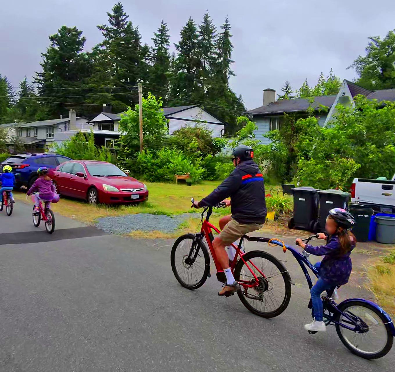 Organizer of the Belmont Bike Bus in Brookswood, Nathan Tiessen, has began coordinating regular family bike rides for anyone in Langley interested in cycling. These rides are a great way to experience and learn about cycling in a low-pressure, family-friendly atmosphere, meet likeminded people who care about the urban environment, and learn about alternatives to getting around Langley without driving. It also helps us find areas for improvement that our organization can advocate for. Since the schedule is often impromptu and flexible, based on availability, the rides and other meetups are coordinated in our Strong Towns Langley WhatsApp community.